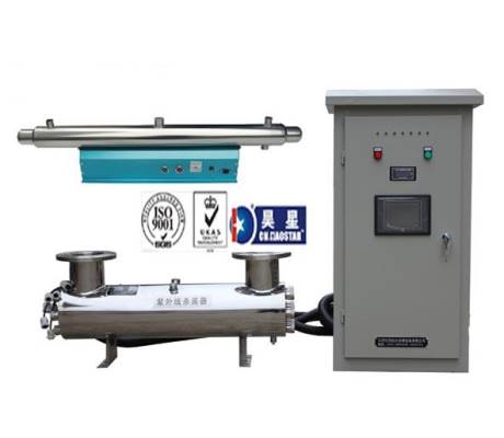 紫外消毒器是一種自動(dòng)清洗消毒滅菌設(shè)備,主要裝置采取了特制的高強(qiáng)度無(wú)臭氧紫外線殺菌燈和內(nèi)壁經(jīng)過(guò)特殊處理的微炭奧氏體SUS304,304L,316,316L不銹鋼材料制成筒體。筒體外側(cè)經(jīng)特殊拋光處理,使經(jīng)過(guò)預(yù)處理的水在流過(guò)筒體時(shí)受到253.7nm紫外線的足夠線量的照射,具有良好的殺菌效果,也有效減少了對(duì)超純水的影響。