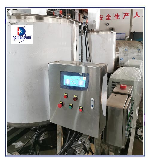4、啟動1#、2#罐制冷控制柜的制冷壓縮機,開始將物料制冷至設定溫度5C°;